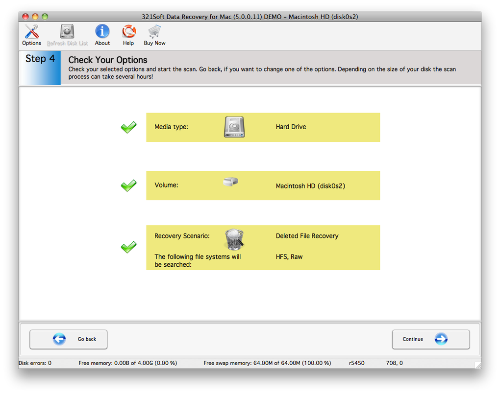 Data Recovery for Mac busca en unidades CD/DVD, discos físicos o memorias USB en el formato nativo de Mac OS X (HFS/HFS+) o en FAT (en el caso de pendrives).